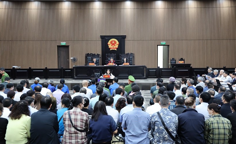 Tại phiên tòa, Thư ký phiên tòa thông báo có 134/141 bị cáo có mặt. Trong đó, vắng 7 bị cáo (2 bị cáo bỏ trốn đang bị truy nã, 5 bị cáo có đơn xin xét xử vắng mặt vì lý do sức khỏe).