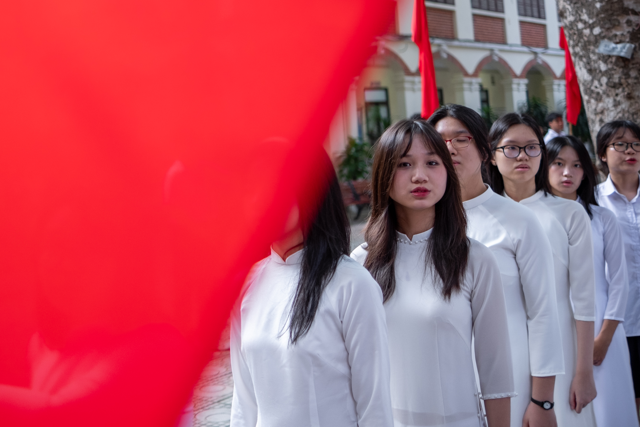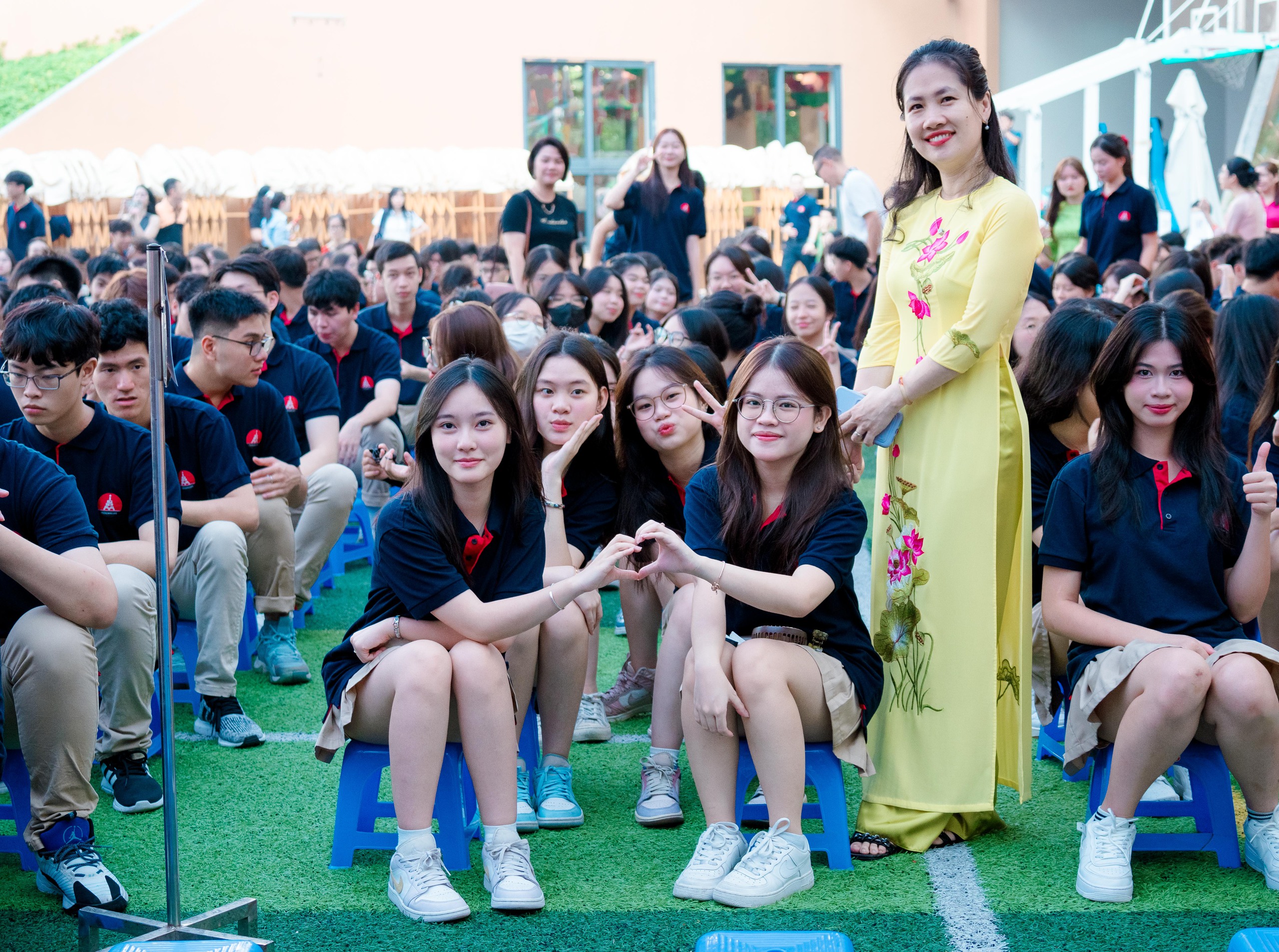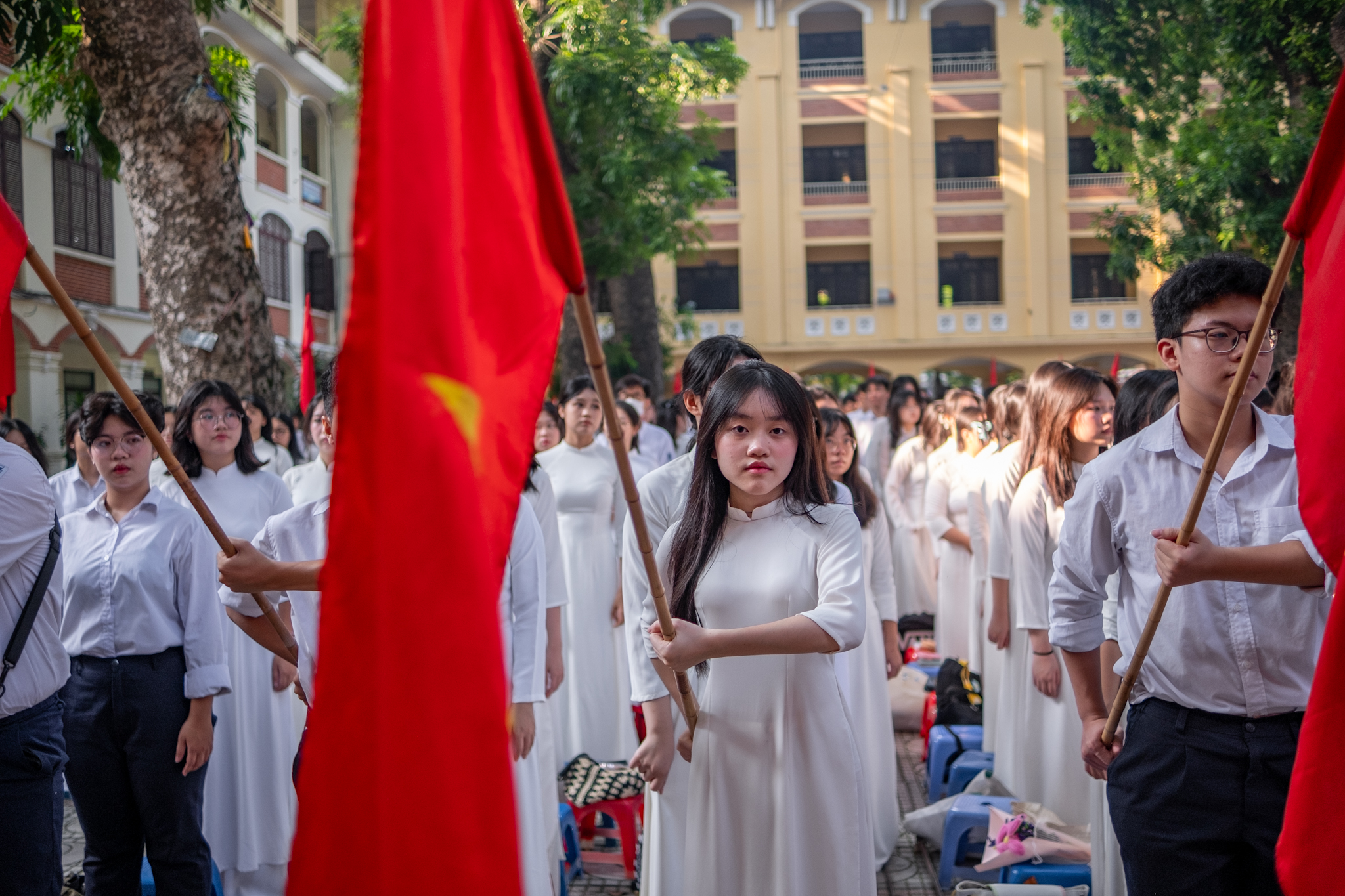 Các nam sinh mặc áo áo trắng sơ vin, còn các nữ sinh thì thướt tha trong tà áo dài