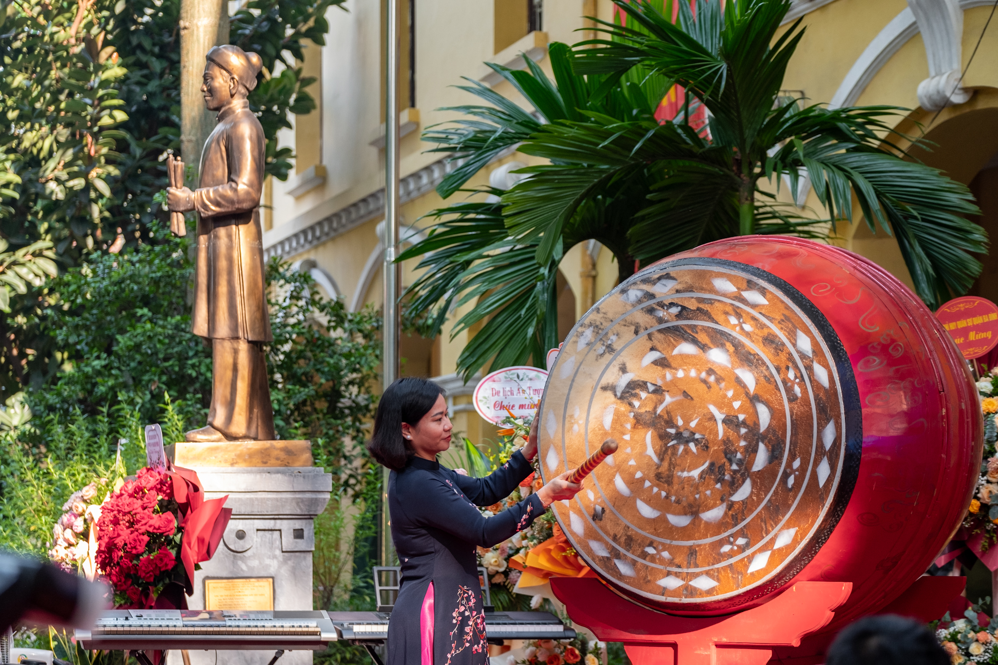 Tại trường THPT Phan Đình Phùng, các bạn học sinh có mặt từ rất sớm để chuẩn bị cho ngày khai giảng năm học mới. Nếu như nam sinh gọn gàng trong bộ đồng phục áo trắng quần đen, thì nữ sinh lại thướt tha trong tà áo dài trắng. Thời tiết nắng đẹp, kết hợp cùng khung cảnh nên thơ của ngôi trường được mệnh danh có view đẹp nhất Hà Nội đã tạo nên buổi lễ khai giảng đầy ý nghĩa.